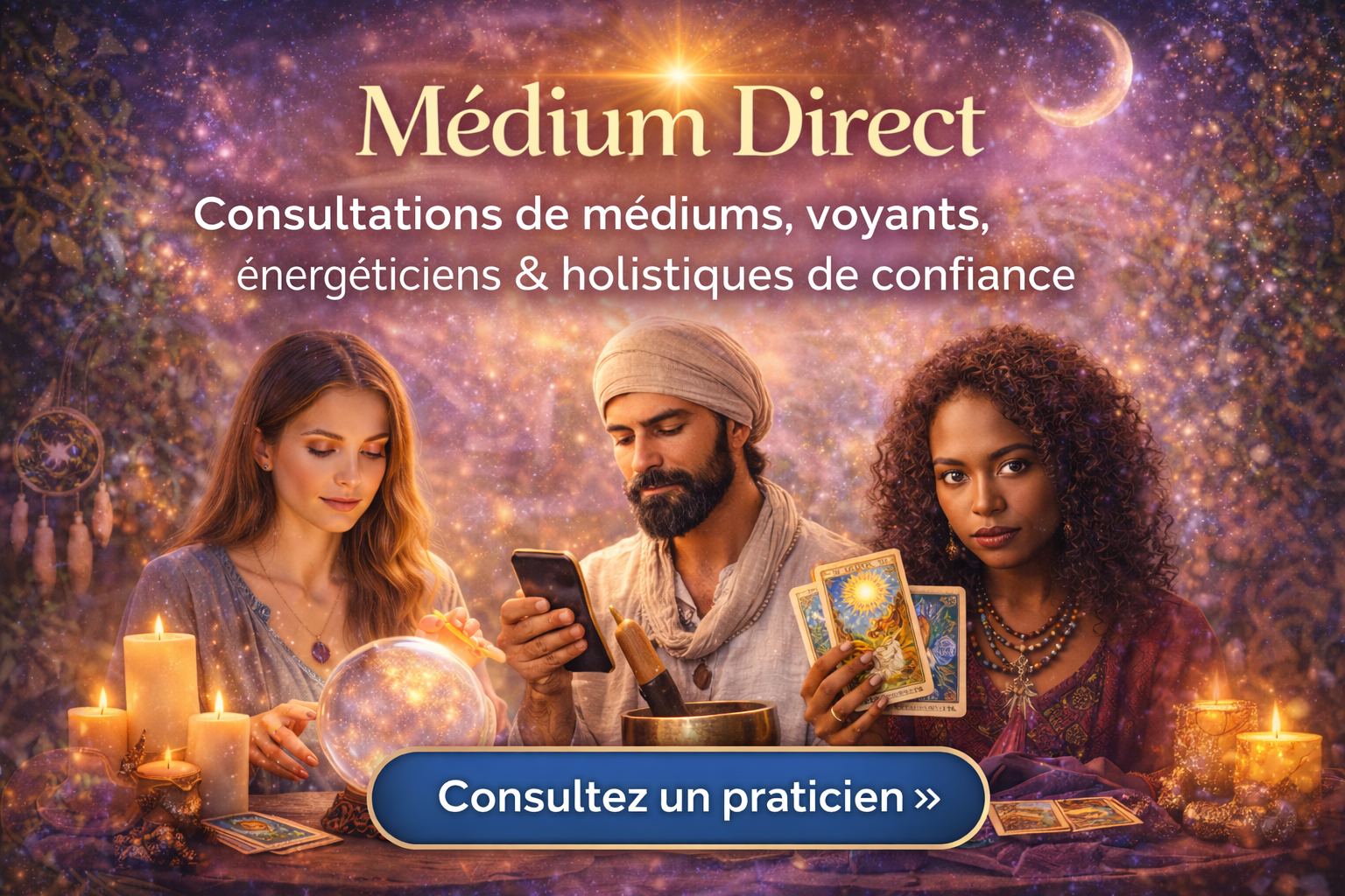 Médium-Direct est votre pont vers une guidance fiable. Notre annuaire est dédié à la voyance et aux arts divinatoires, vous permettant de trouver facilement un praticien sérieux selon vos besoins spécifiques : médiumnité, voyance, tarologie, guidance spirituelle ou soins énergétiques. Notre objectif est simple : créer un espace clair, rassurant et accessible où consultants et praticiens se rencontrent en toute confiance.
